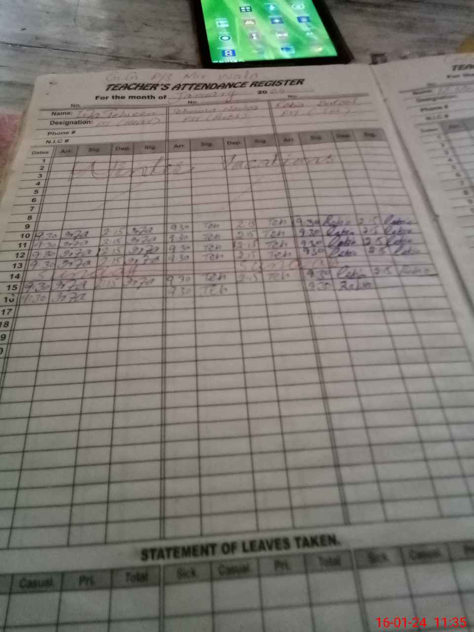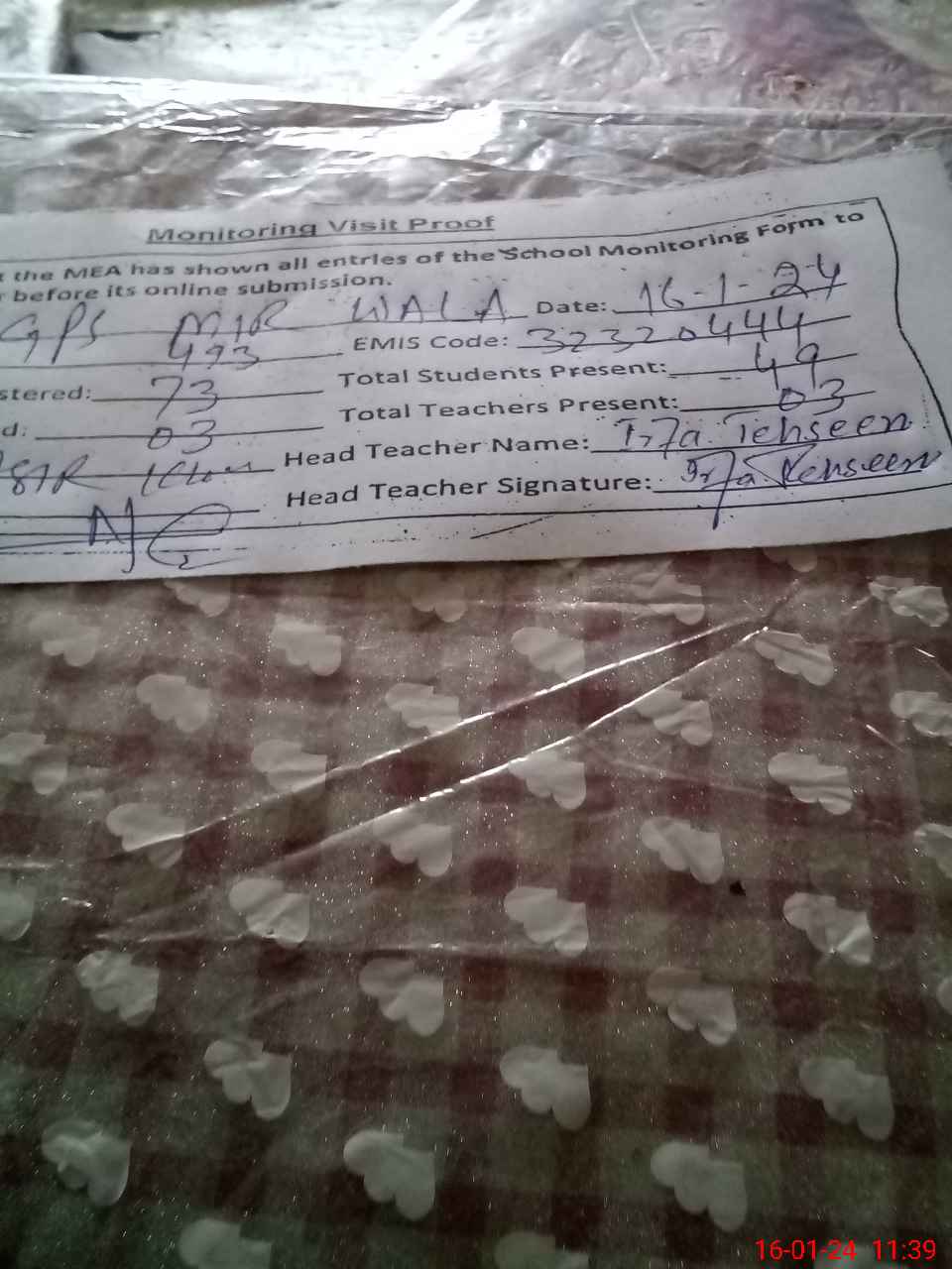 | Name: Ir**** Te**** Designation: (School Headmaster's/Headmistress's) PST Phone/Cell Number: 03**** |