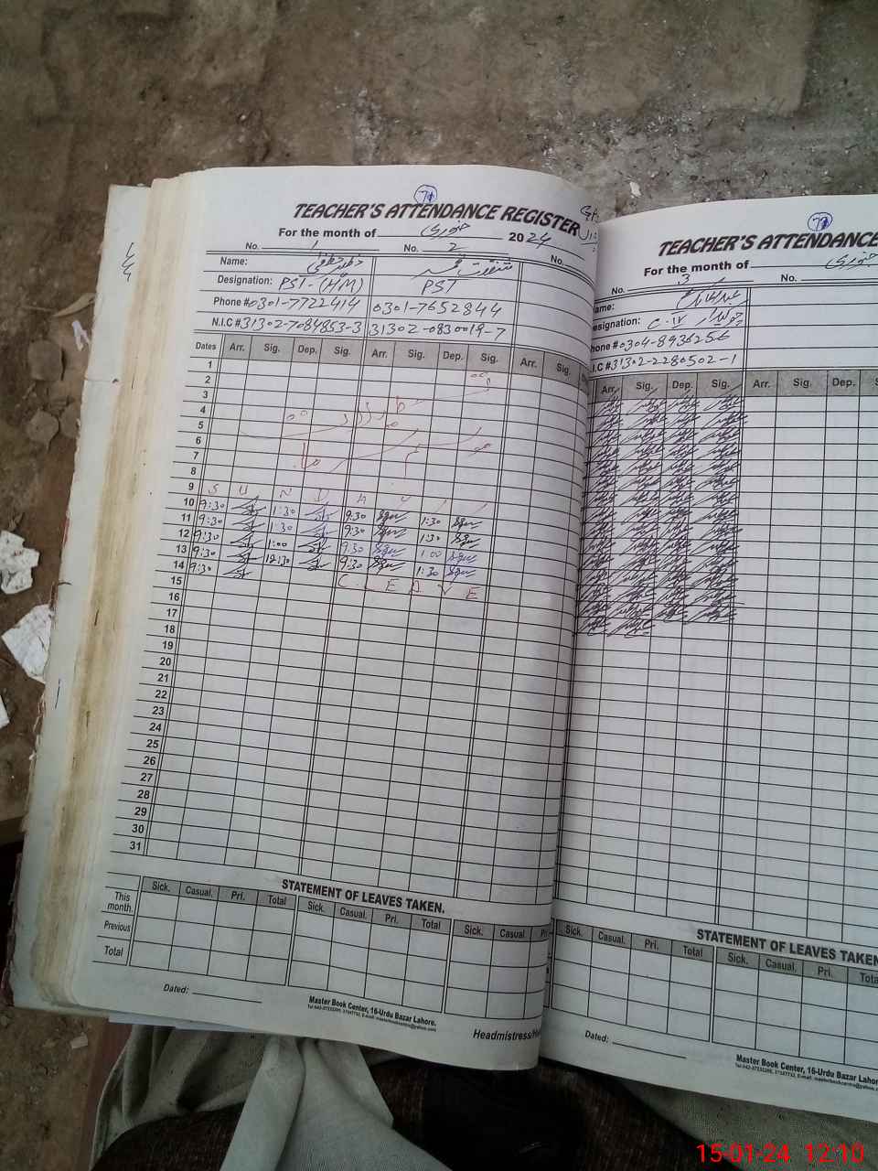 | CNIC | Full Name | Designation | R/C | Absence During Last Calender Month |