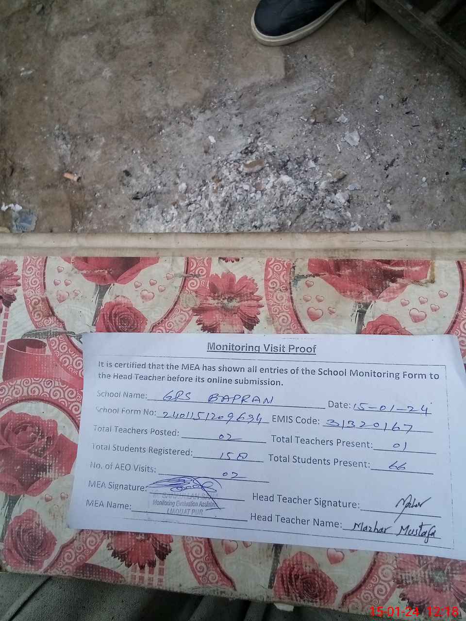 | Attendance Register | Head Teacher | MEA with School | Visit Proof |