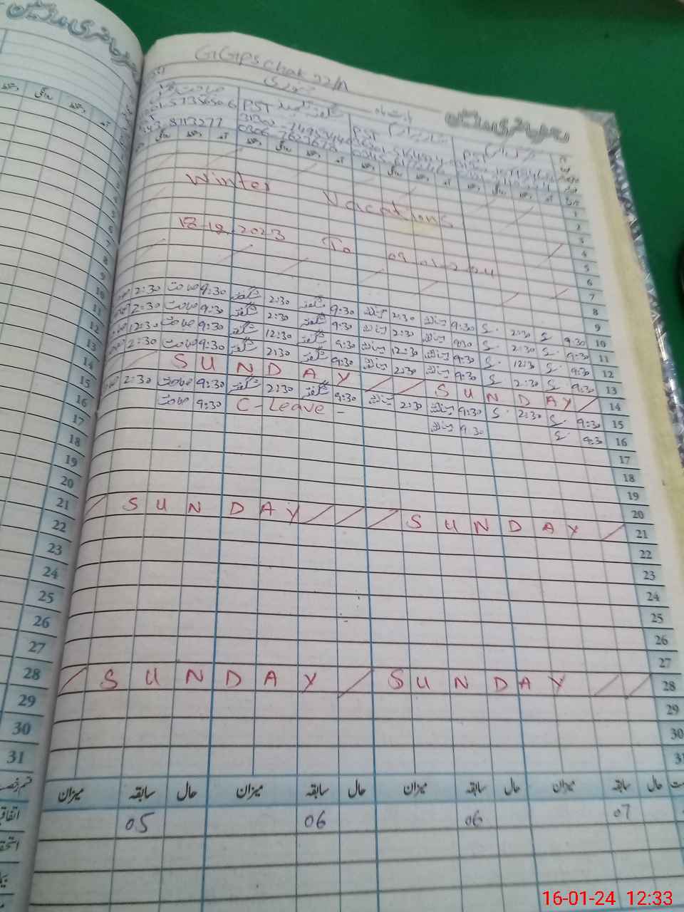 | CNIC | Full Name | Designation | R/C | Absence During Last Calender Month |