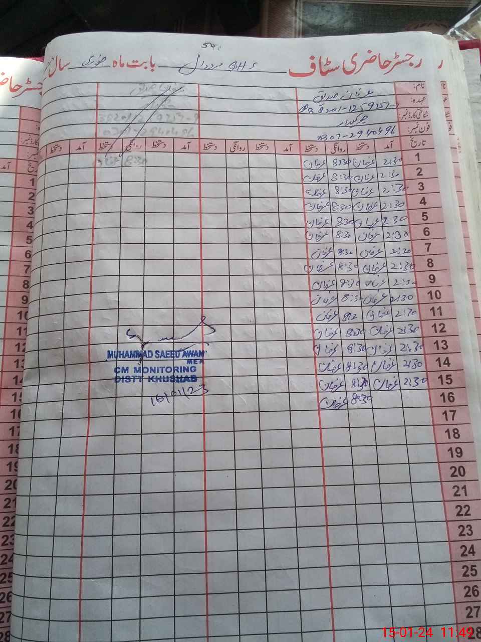| Name: IQ**** AH**** AW**** Designation: (School Headmaster's/Headmistress's) SENIOR HEAD MASTER Phone/Cell Number: 03**** |