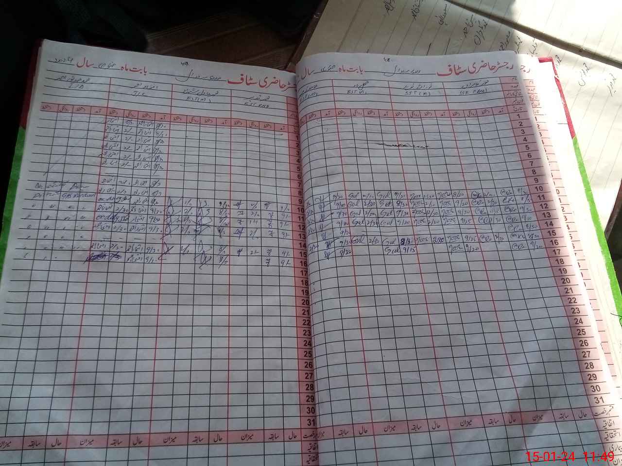 | CNIC | Full Name | Designation | R/C | Absence During Last Calender Month |
