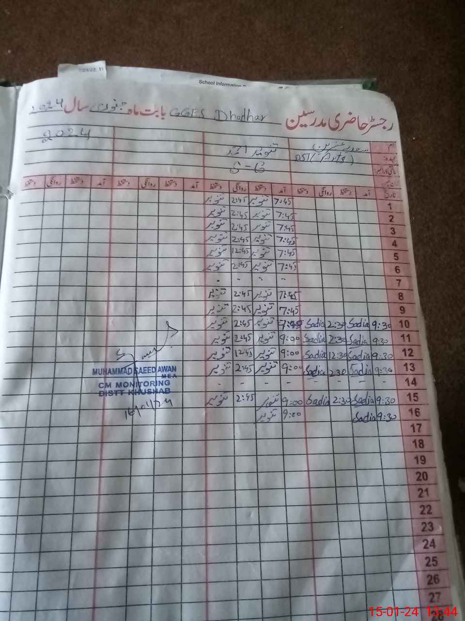 | District: KHUSHAB | Tehsil: NAUSHERA | Markaz: KHABAKI (FEMALE) | Level: Middle | |