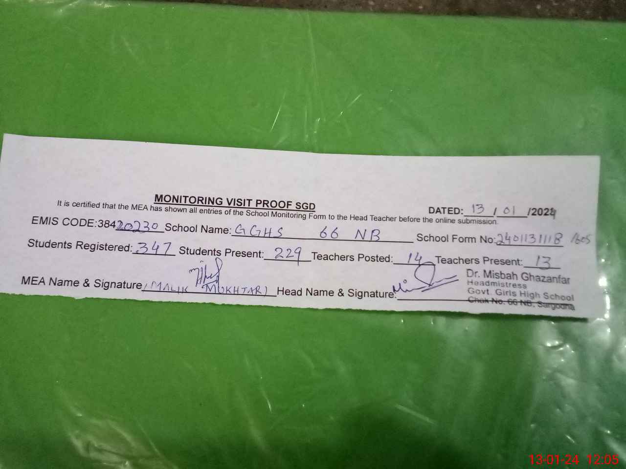| EMIS Code: 38420230 | Name of School: GGHS CHAK NO.66 NB | |||