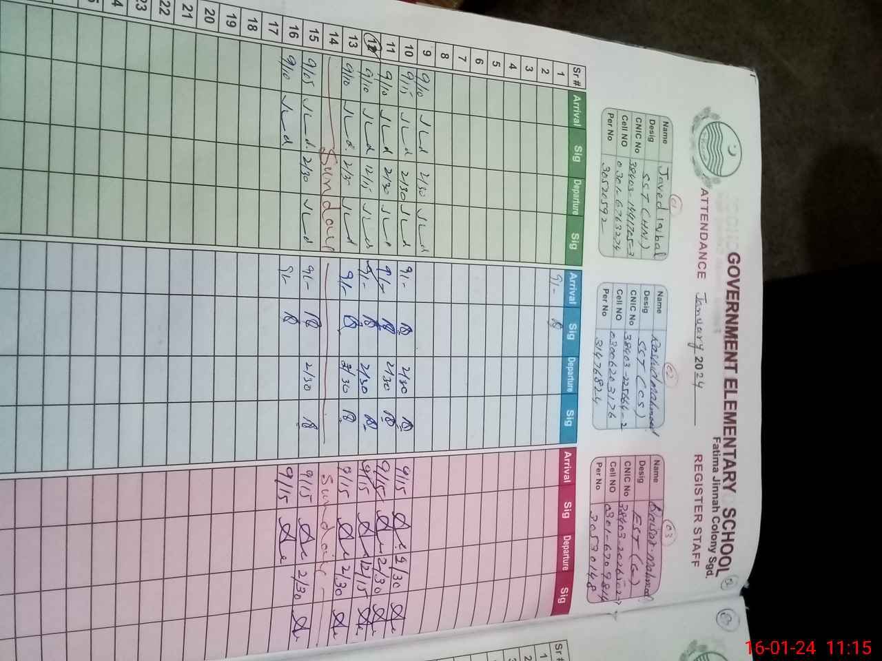 | CNIC | Full Name | Designation | R/C | Absence during last cal. month |