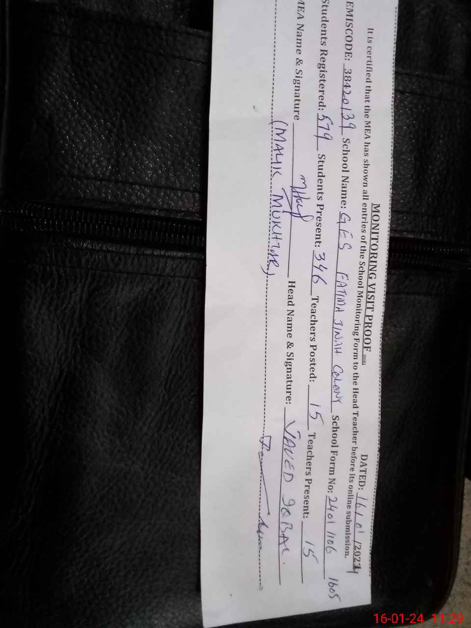 | EMIS Code: 38420139 | Name of School: GHS FATIMA JINNAH COLONY | |||