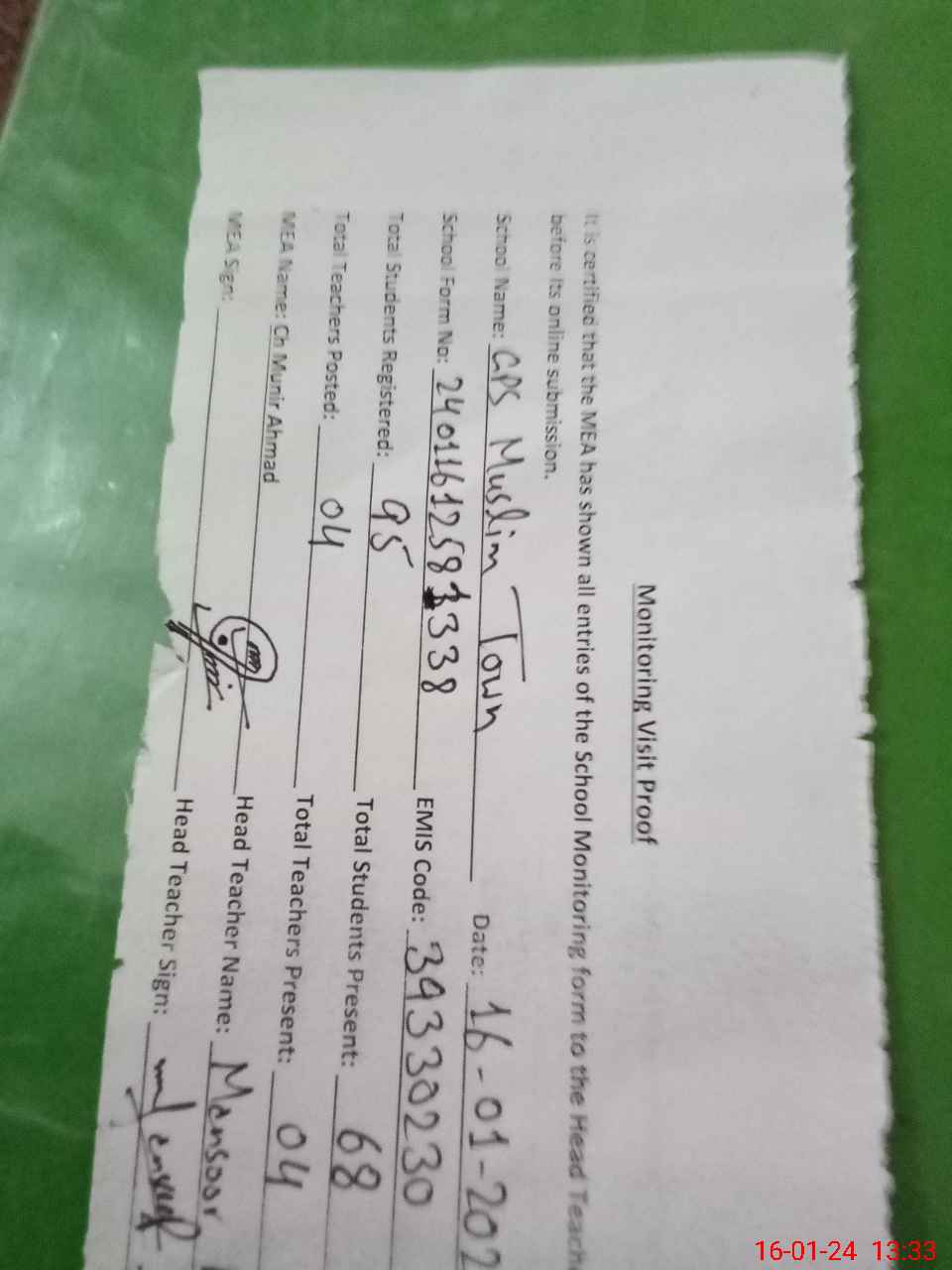 | EMIS Code: 39330230 | Name of School: GPS MUSLIM TOWN RENALA KHURD | |||