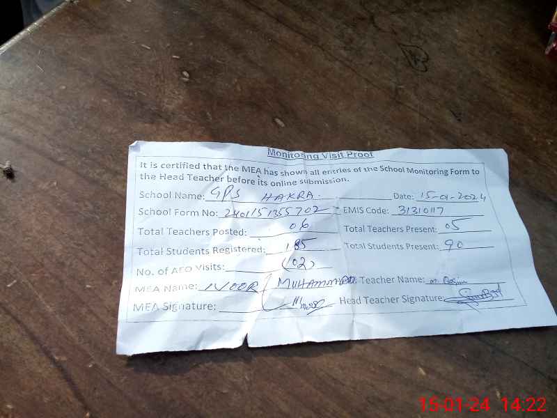 | EMIS Code: 31310117 | Name of School: GPS HAKRA | |||