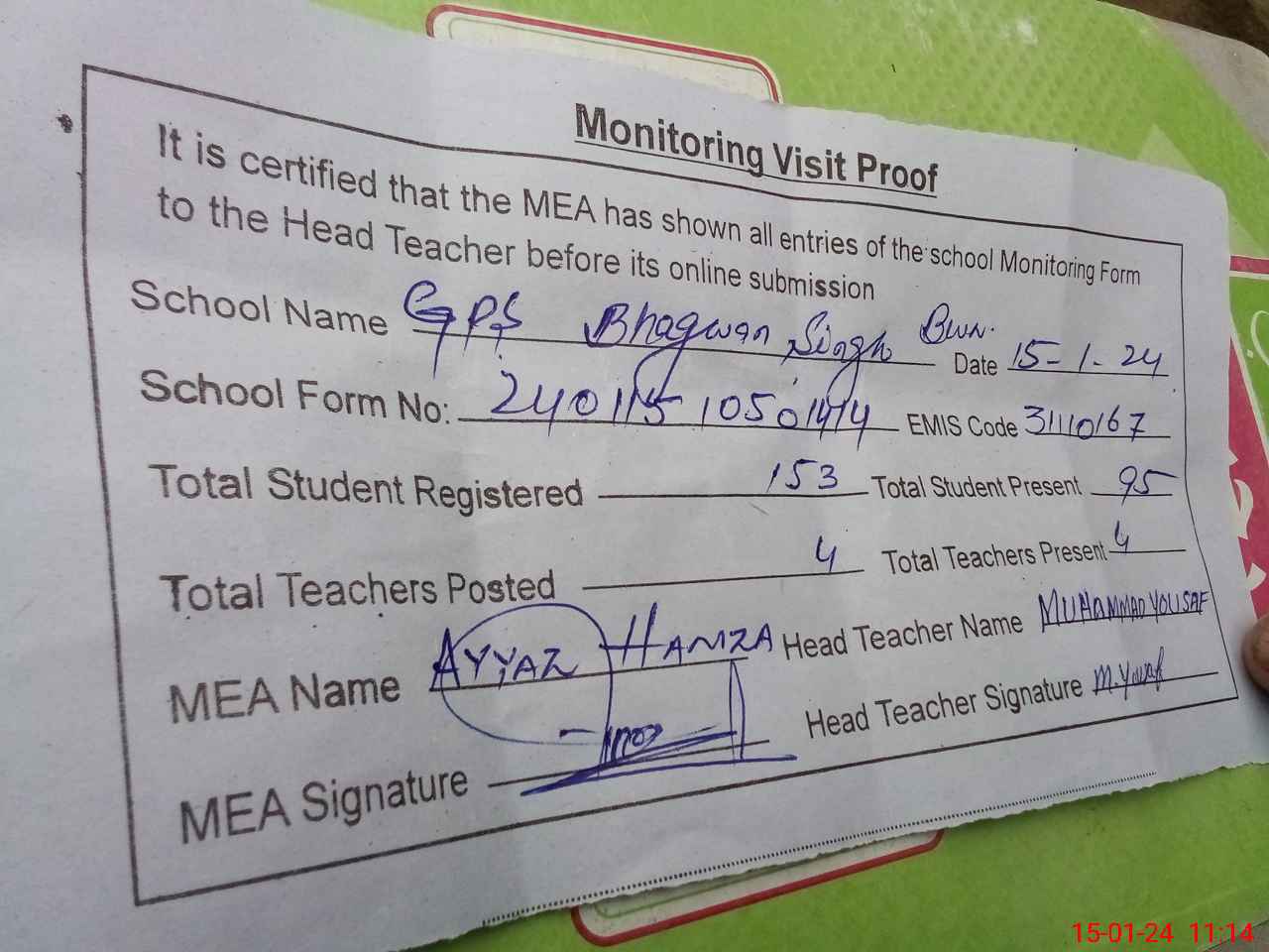 | EMIS Code: 31110167 | Name of School: GPS BHAGWAN SINGH | |||