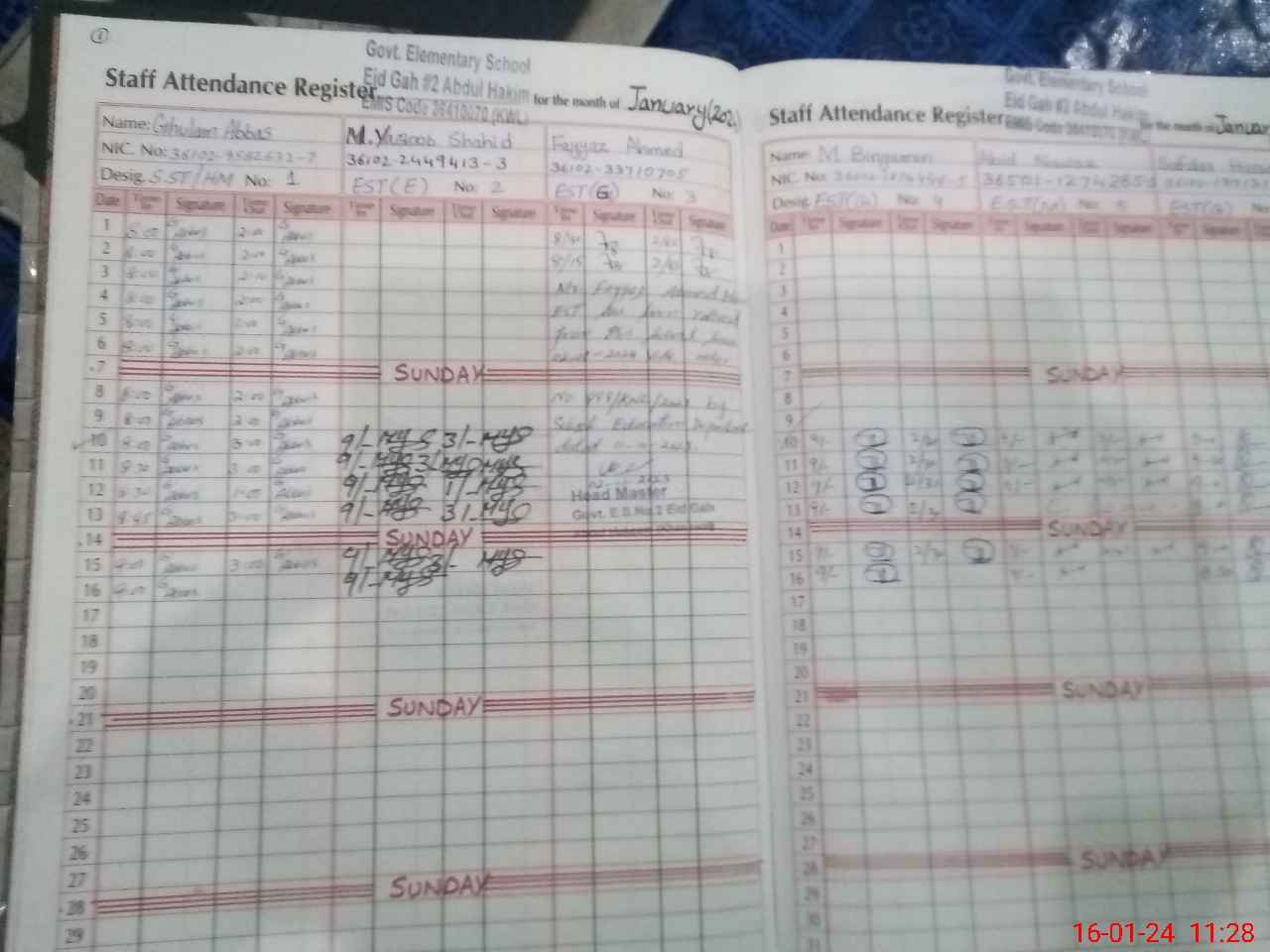 | CNIC | Full Name | Designation | R/C | Absence During Last Calender Month |