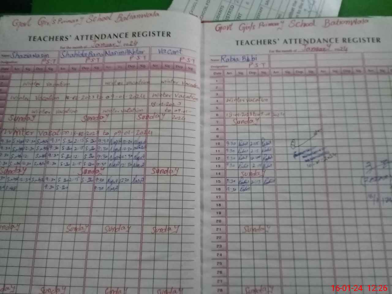 | Name: SH**** NA**** Designation: (School Headmaster's/Headmistress's) PST Phone/Cell Number: 03**** |