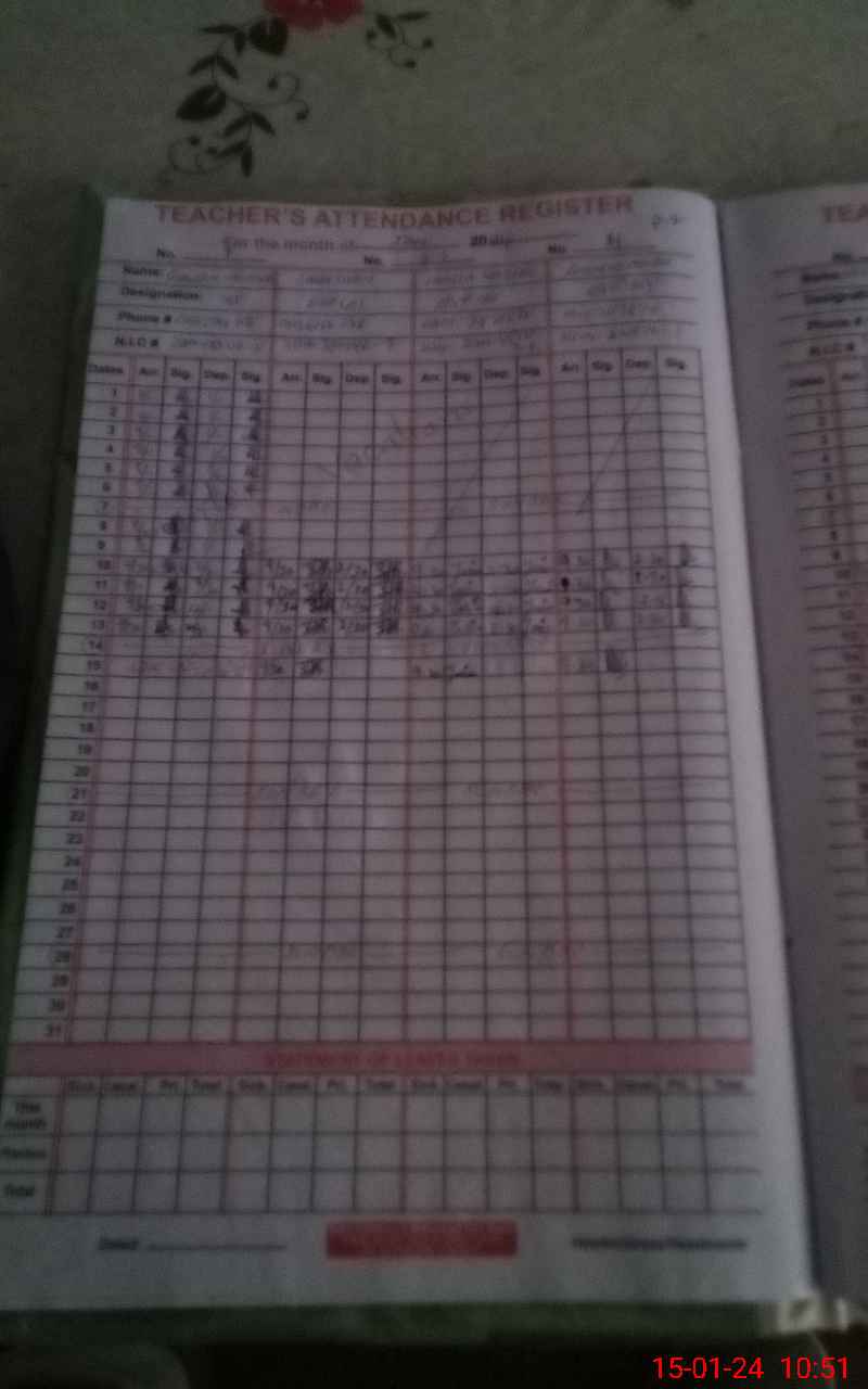 | CNIC | Full Name | Designation | R/C | Absence During Last Calender Month |