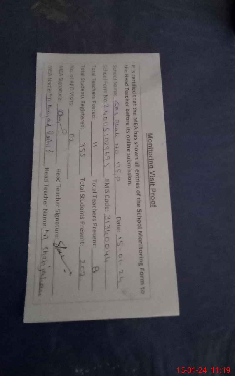 | Certified that this School was Inspected by the Undersigned MEA/DMO Today and the Information Stated Above is as Per Record. | |||||