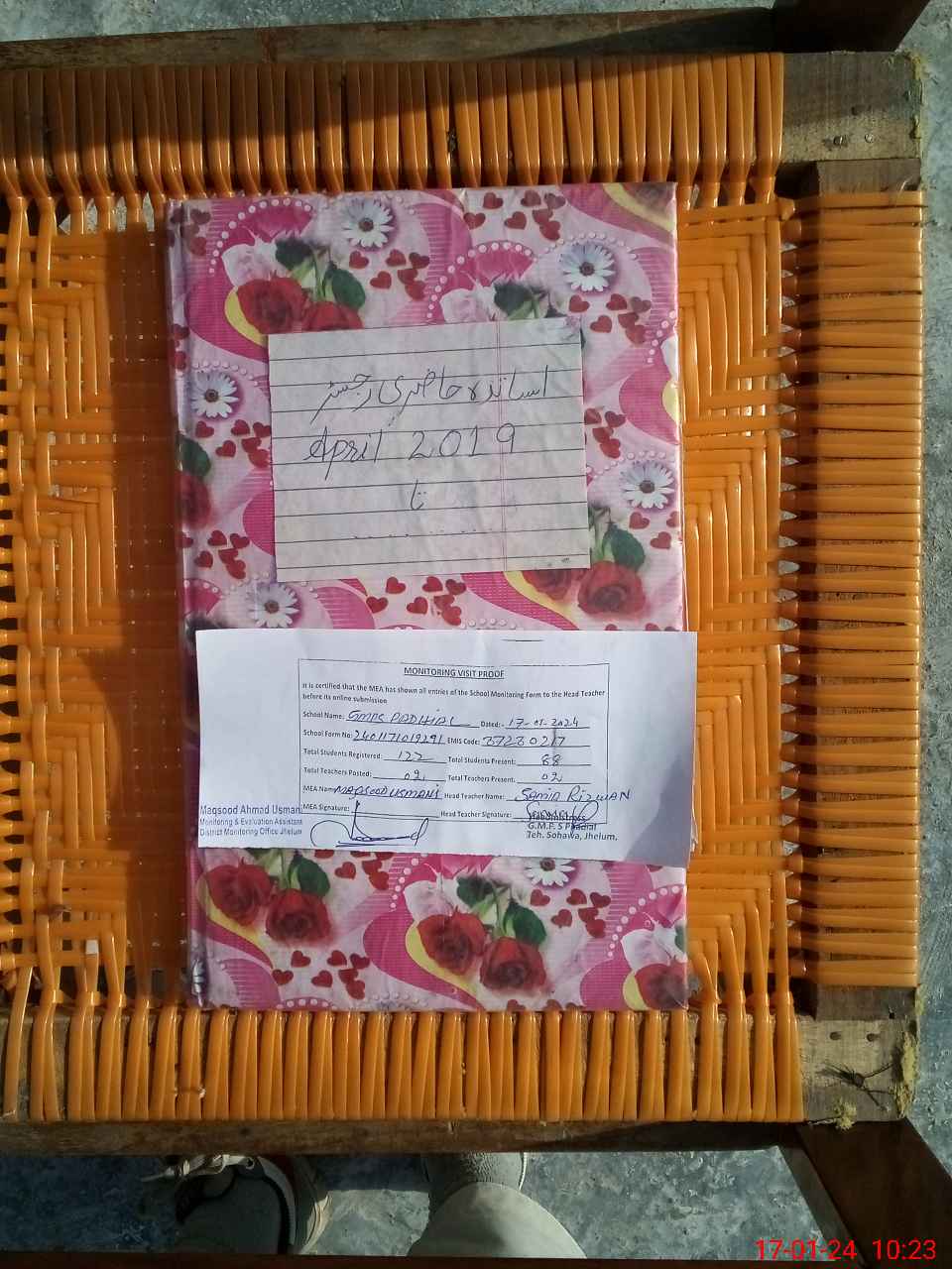 | Attendance Register | Head Teacher | MEA with School | Visit Proof |