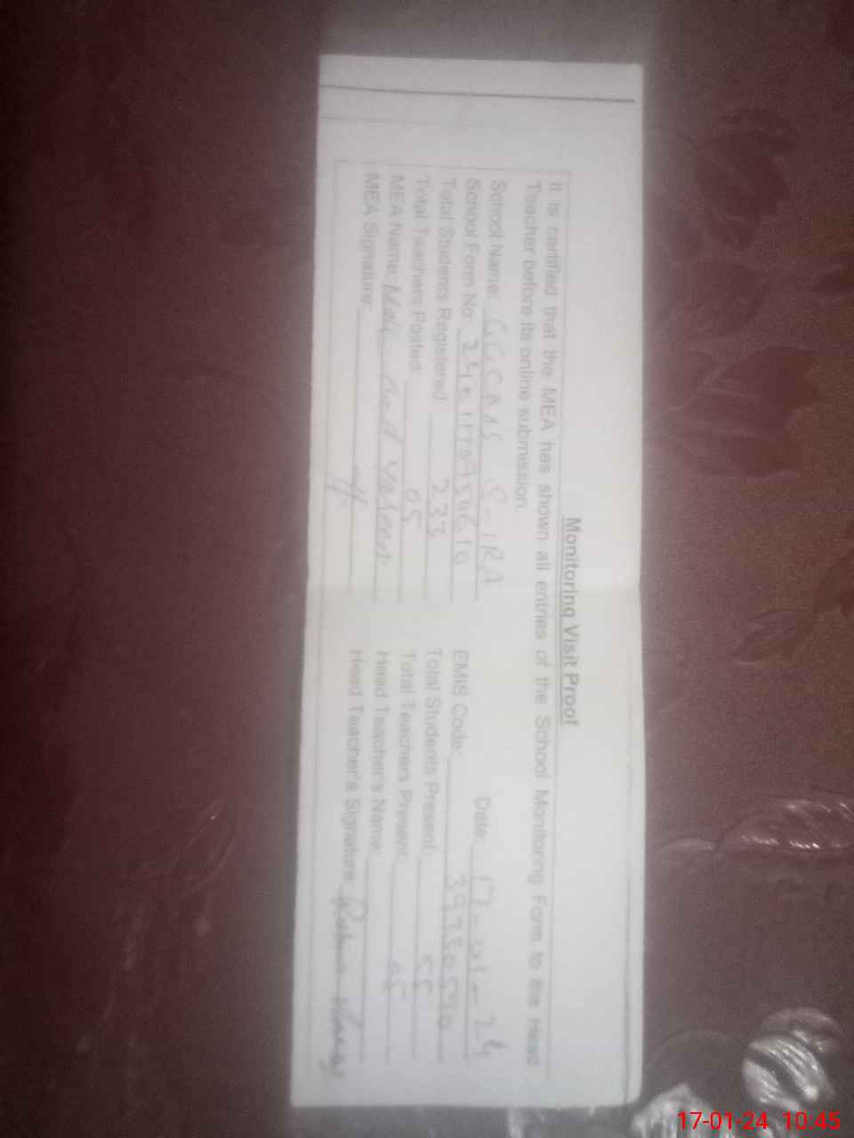 | Certified that this School was Inspected by the Undersigned MEA/DMO Today and the Information Stated Above is as Per Record. | |||||