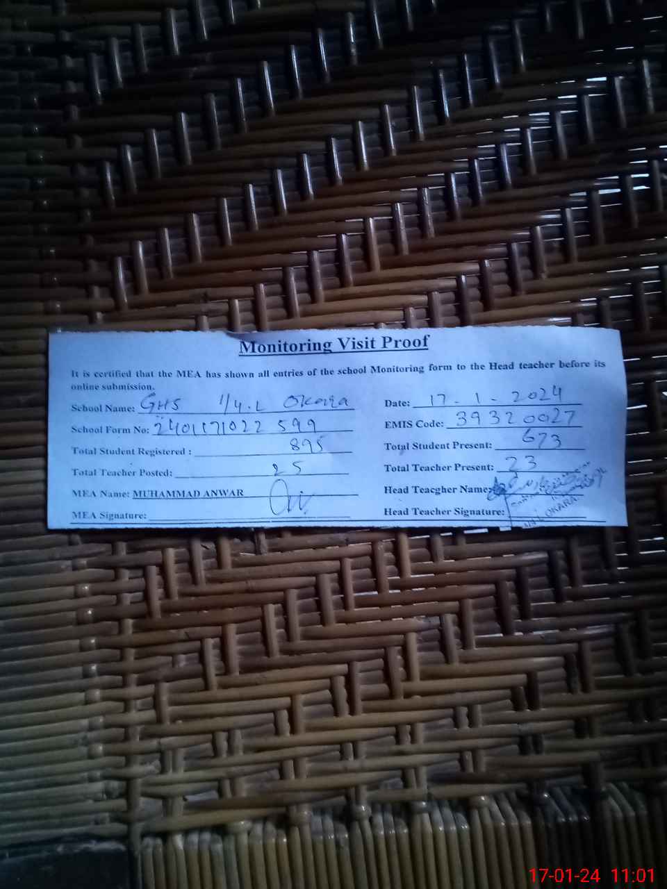 | EMIS Code: 39320027 | Name of School: GHS CHAK NO. 1/4-L | |||