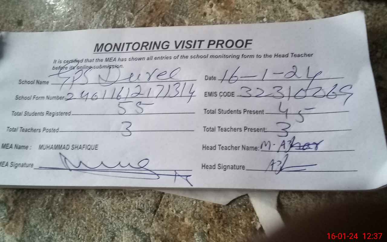 | EMIS Code: 32310069 | Name of School: GPS DUREE BABBER | |||