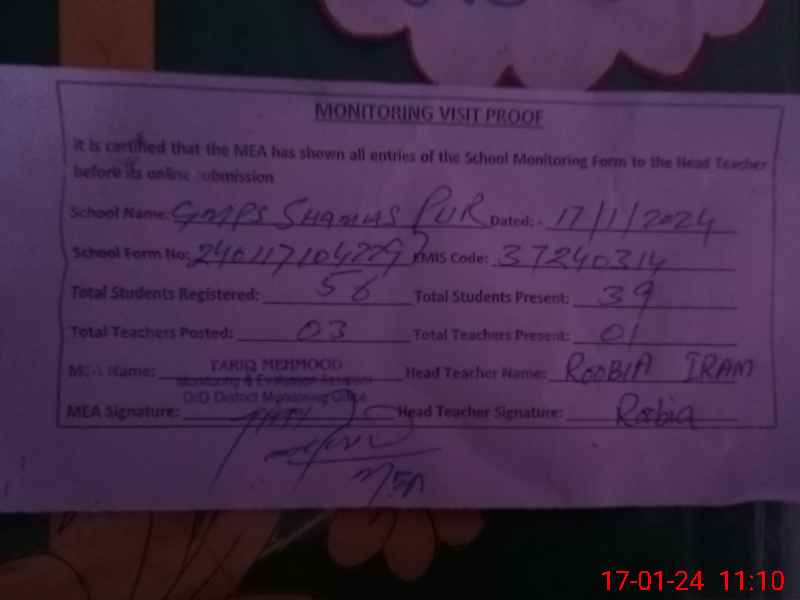 | EMIS Code: 37240314 | Name of School: GMPS SHAMAS PUR | |||