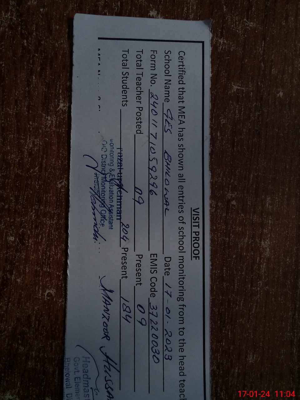 | EMIS Code: 37220030 | Name of School: GES BHILOWAL | |||