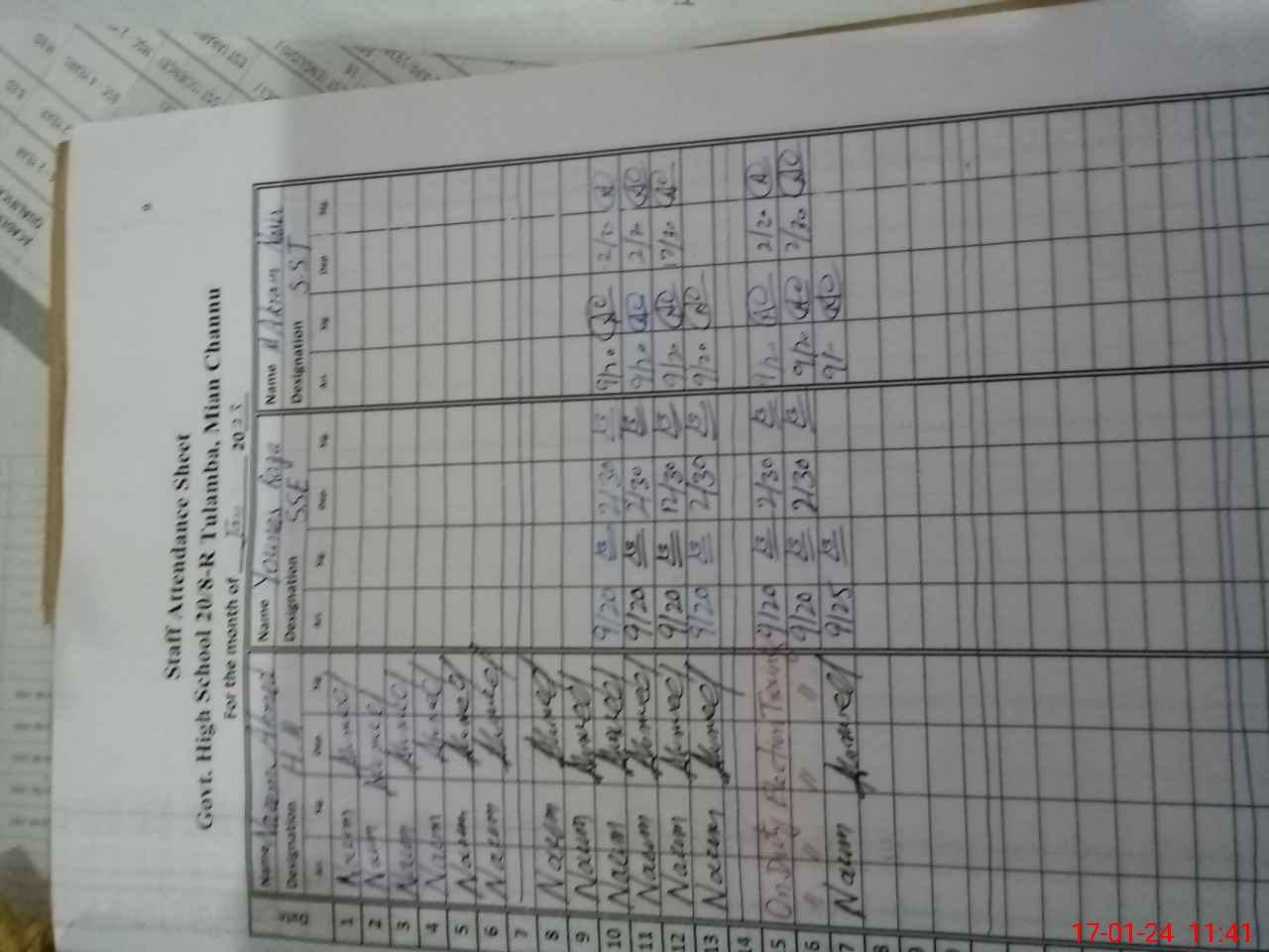 | CNIC | Full Name | Designation | R/C | Absence During Last Calender Month |