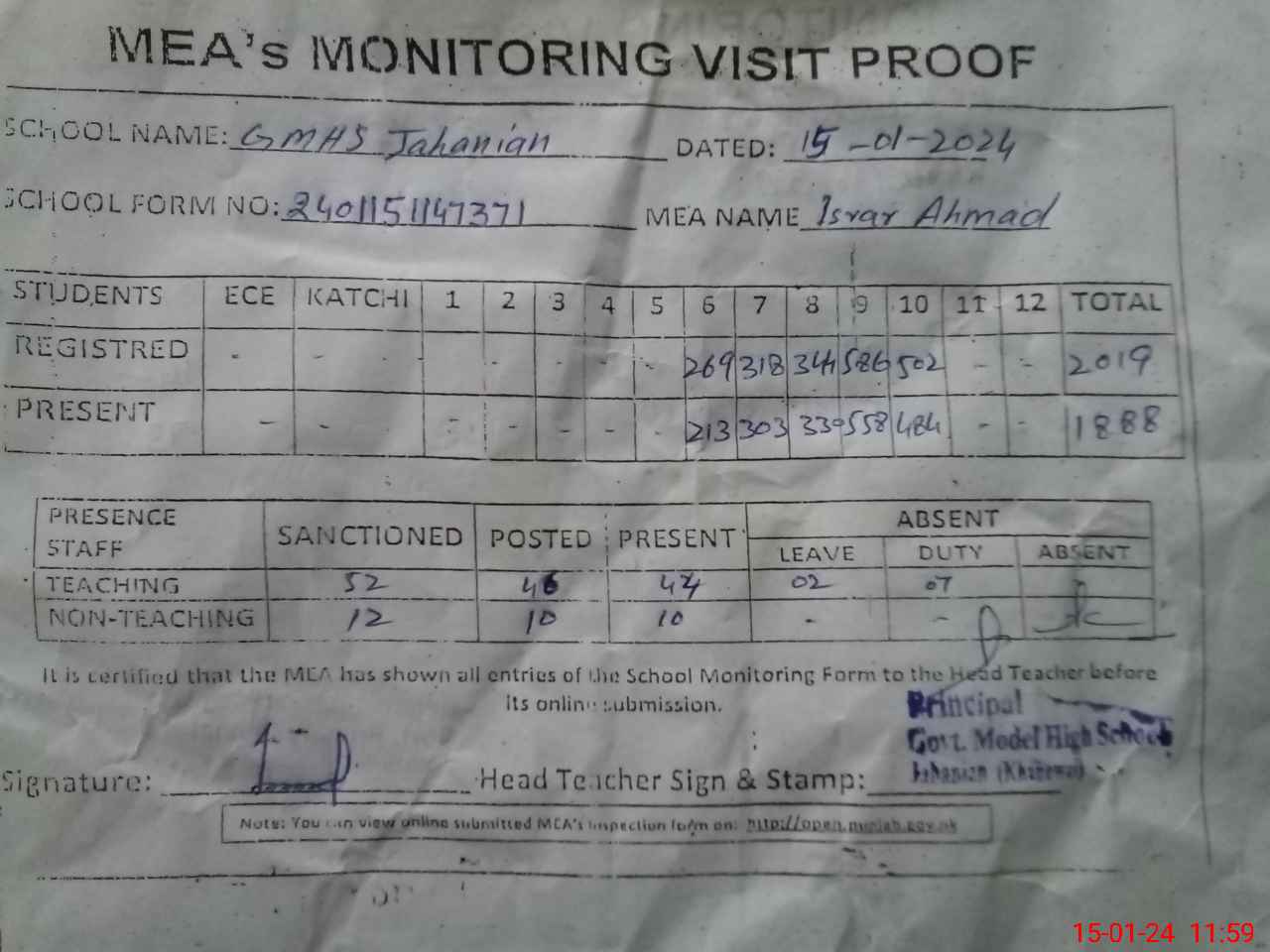 | EMIS Code: 36440029 | Name of School: GMHS JAHANIAN, JAHANIAN | |||