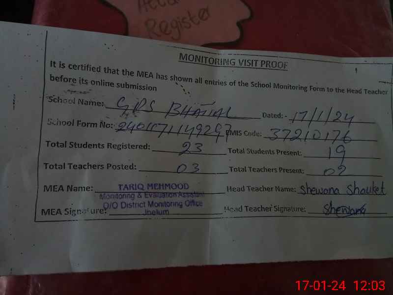 | EMIS Code: 37210176 | Name of School: GPS BHATIAL | |||