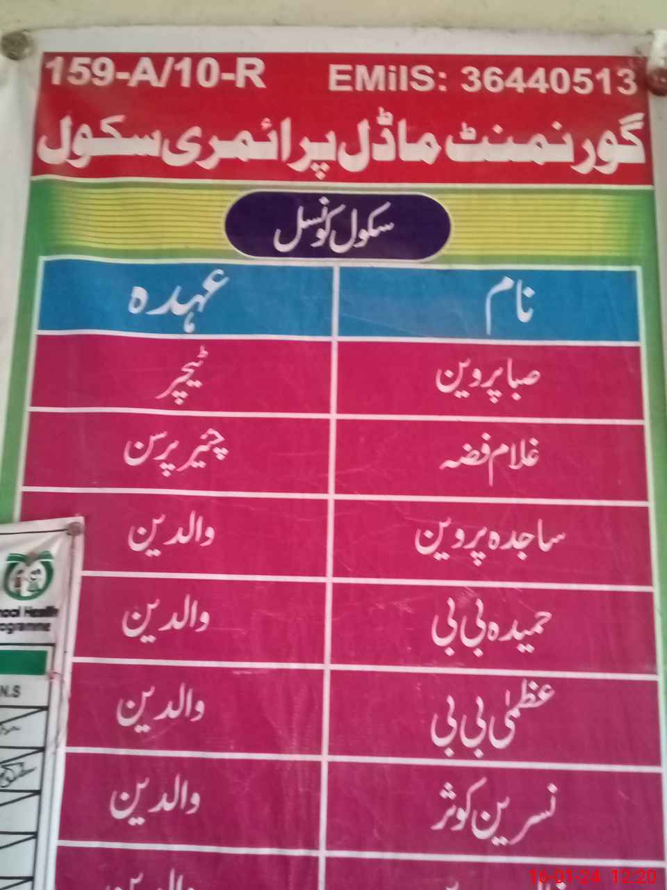 | EMIS Code: 36440513 | Name of School: GMPS 159-A/10-R, JAHANIAN | |||