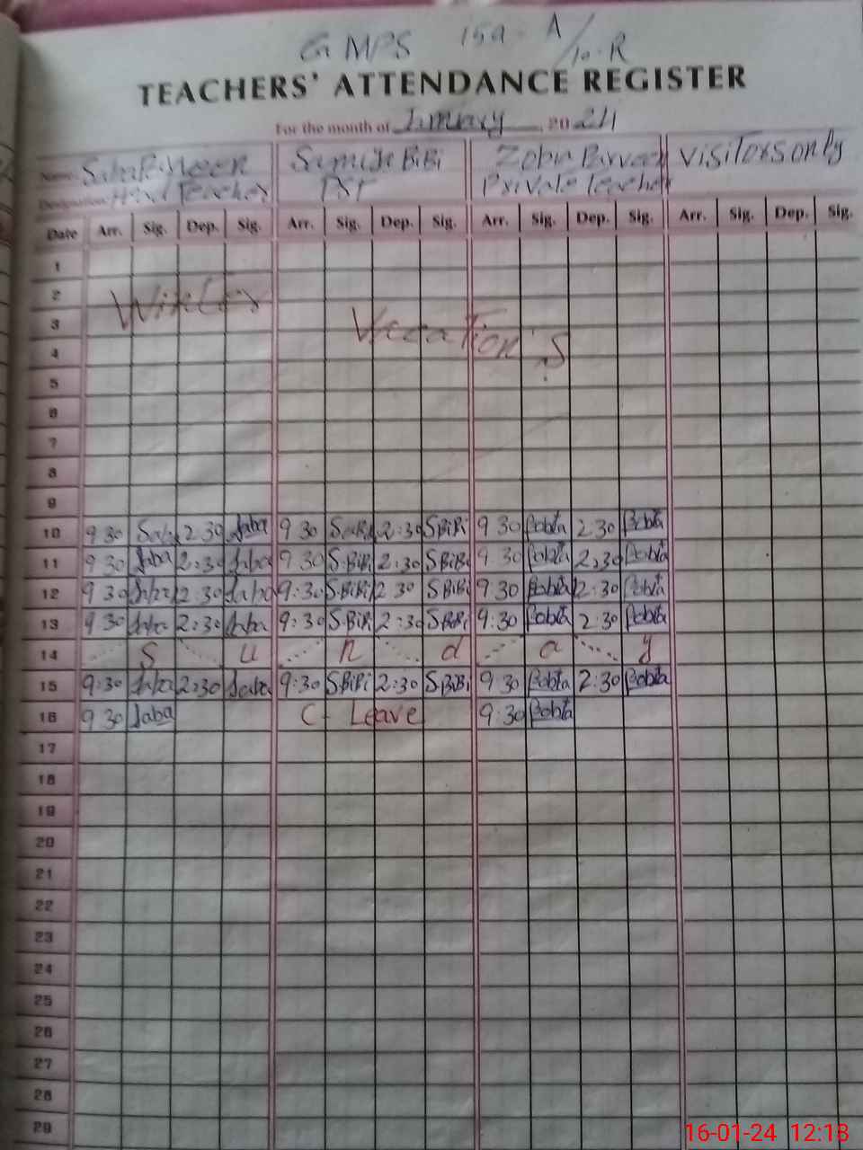 | CNIC | Full Name | Designation | R/C | Absence During Last Calender Month |
