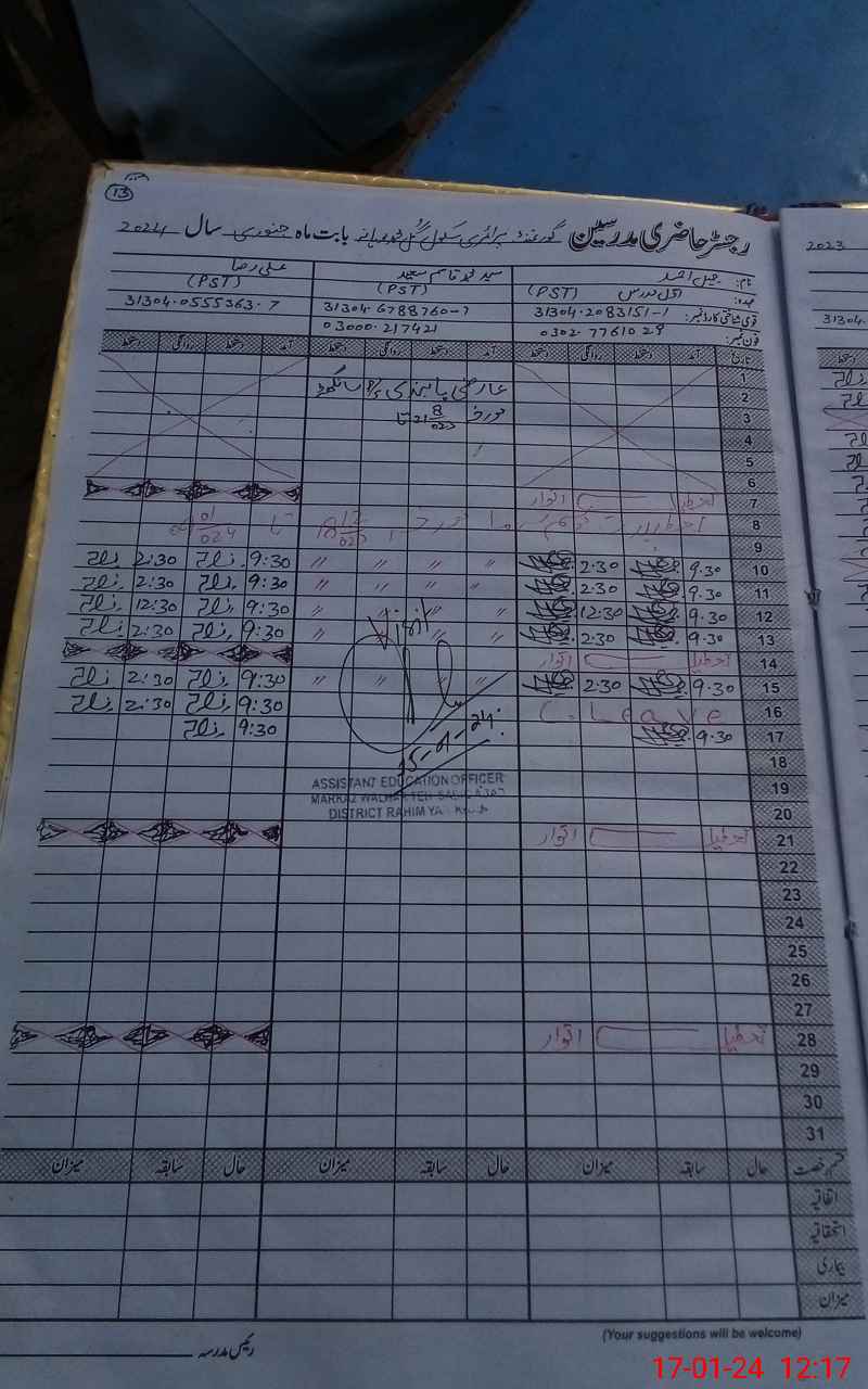 | Name: JA**** AH**** Designation: (School Headmaster's/Headmistress's) PST Phone/Cell Number: 03**** |