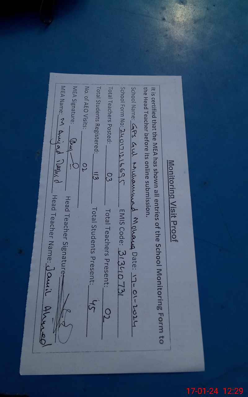 | EMIS Code: 31340731 | Name of School: GPS GUL MUHAMMAD MOHANA | |||