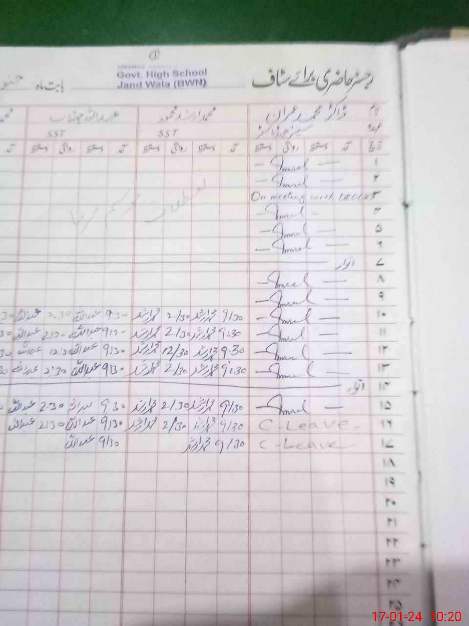 | CNIC | Full Name | Designation | R/C | Absence During Last Calender Month |