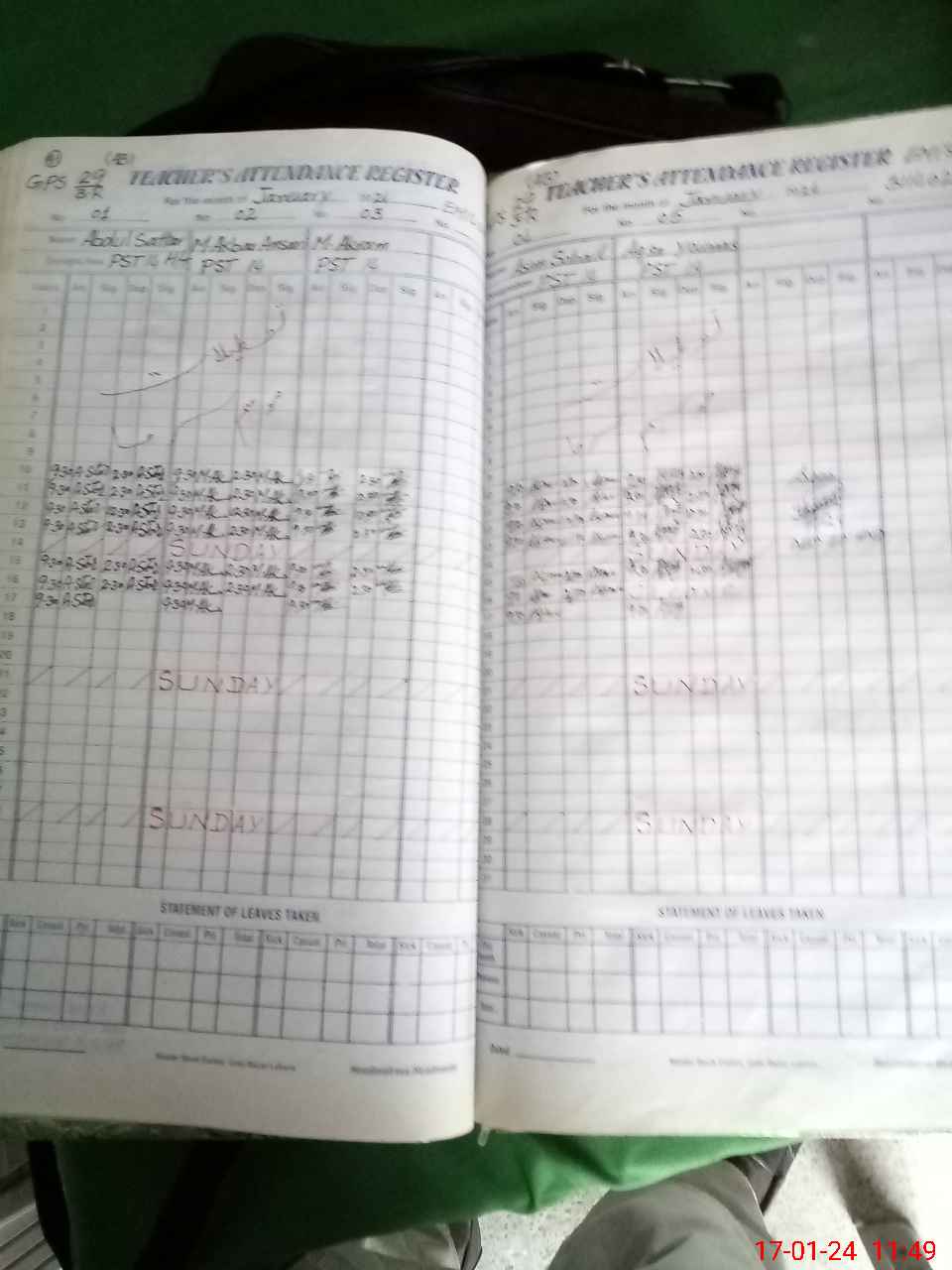 | CNIC | Full Name | Designation | R/C | Absence During Last Calender Month |