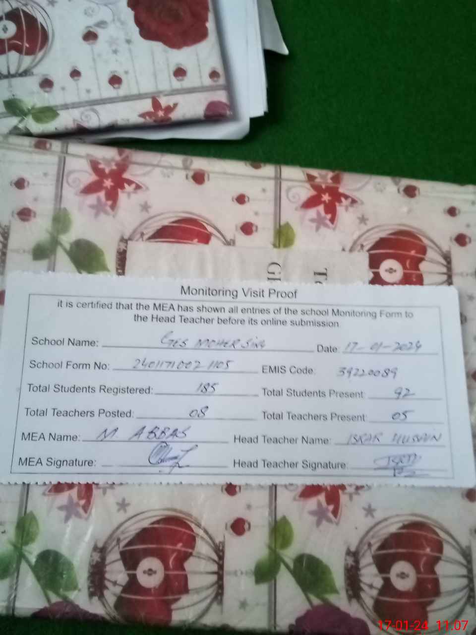 | EMIS Code: 39220089 | Name of School: GES MOHER SINGH ARIFWALA | |||