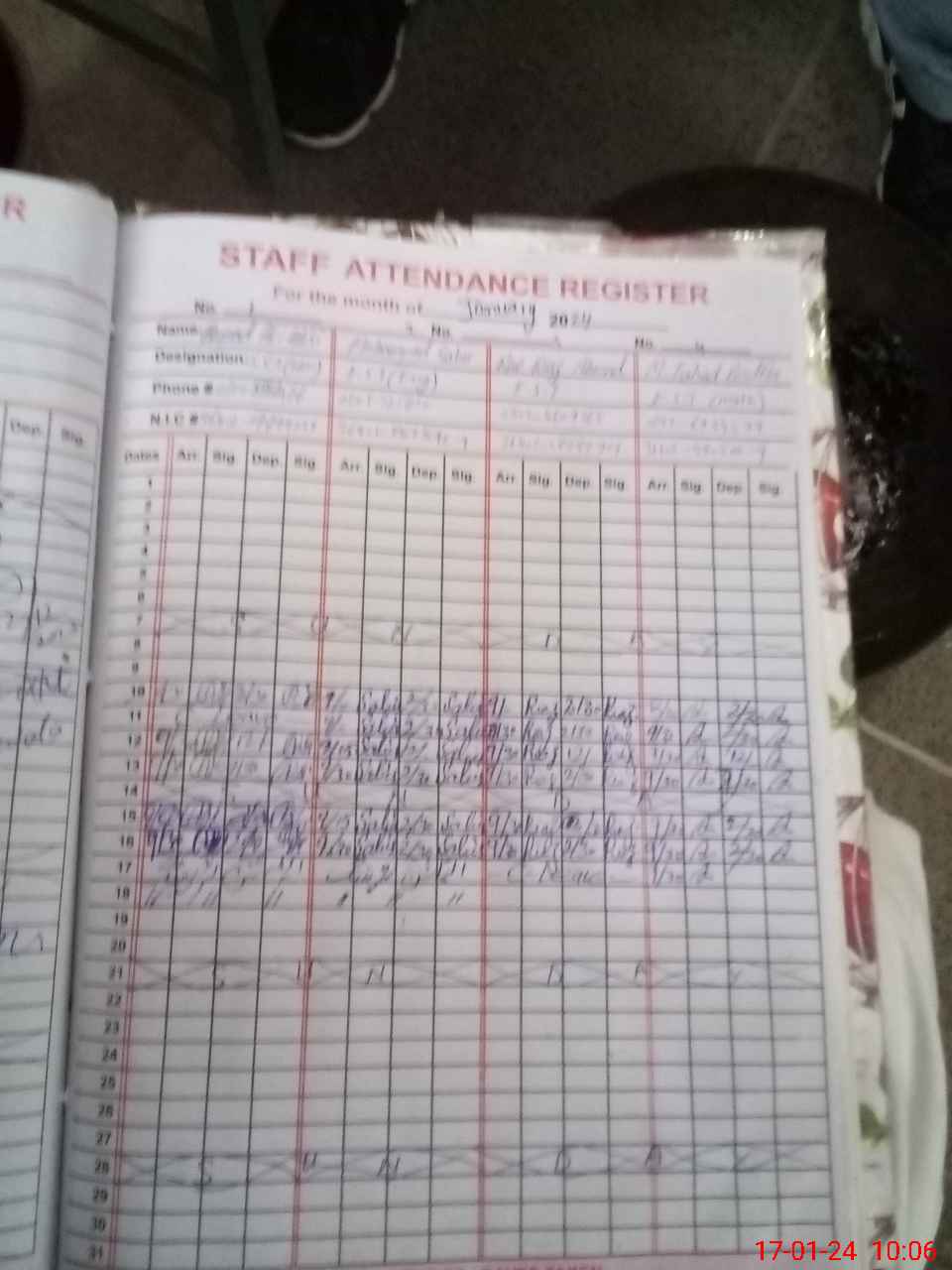 | CNIC | Full Name | Designation | R/C | Absence during last cal. month |
