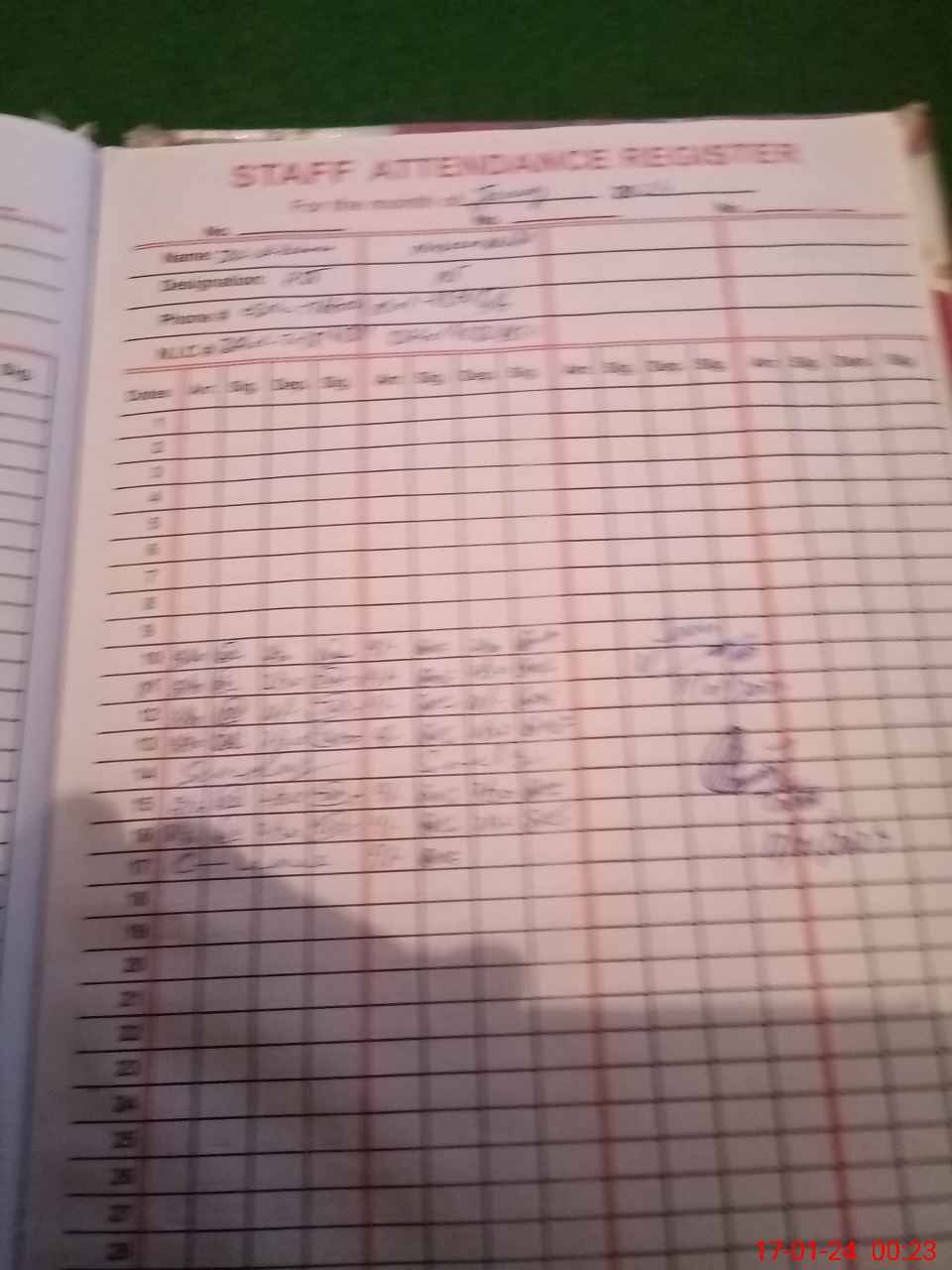 | CNIC | Full Name | Designation | R/C | Absence During Last Calender Month |