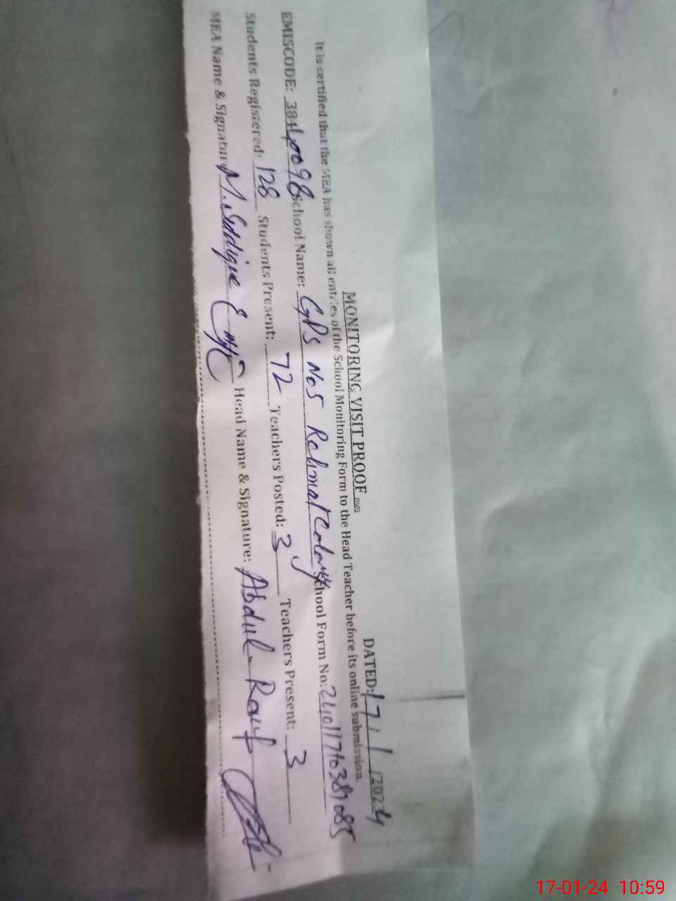 | EMIS Code: 38440098 | Name of School: GPS NO.5 RAHMAT COLONY SILLANWALI | |||