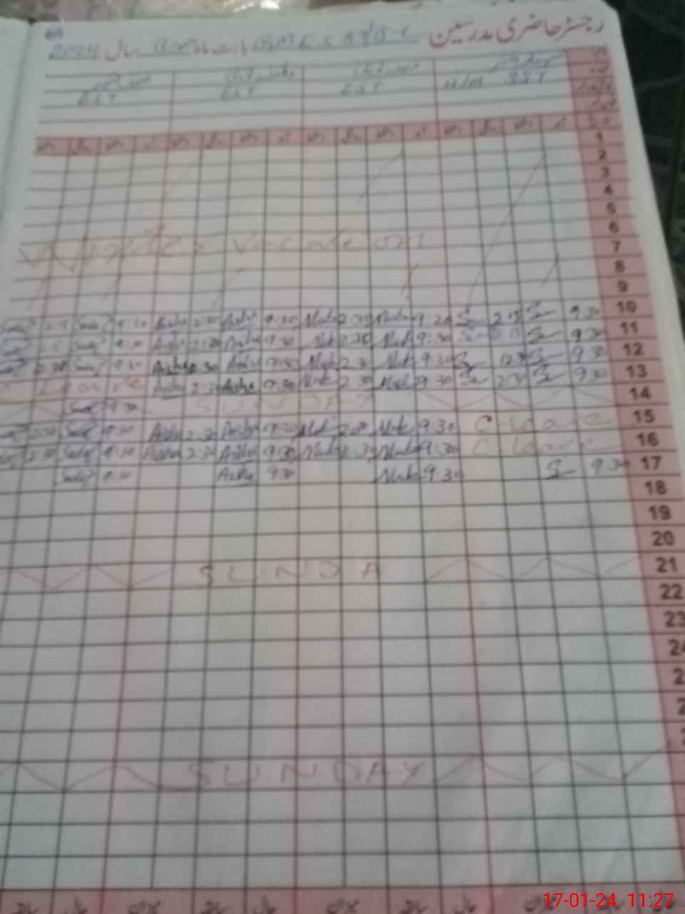 | CNIC | Full Name | Designation | R/C | Absence During Last Calender Month |