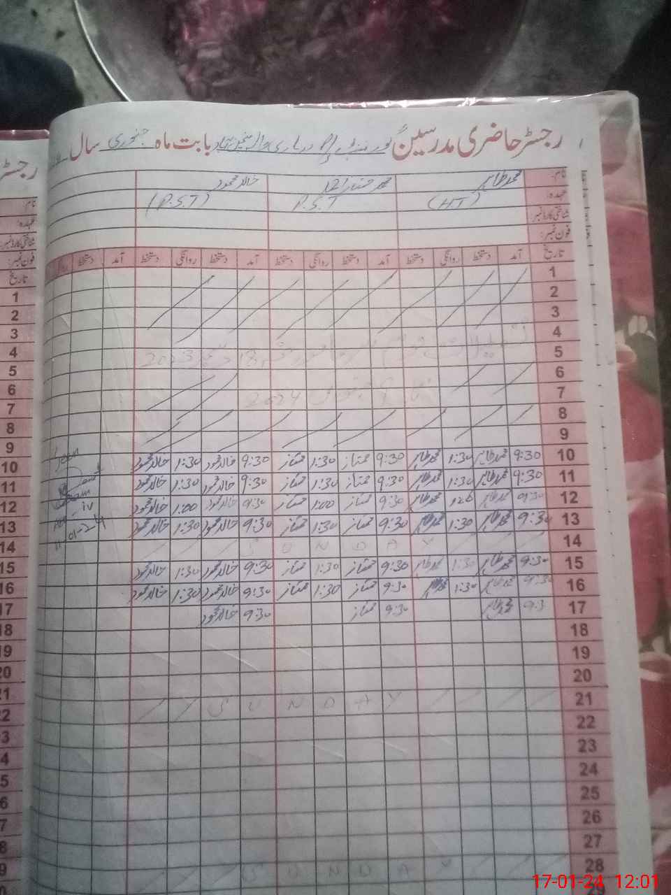 | CNIC | Full Name | Designation | R/C | Absence During Last Calender Month |