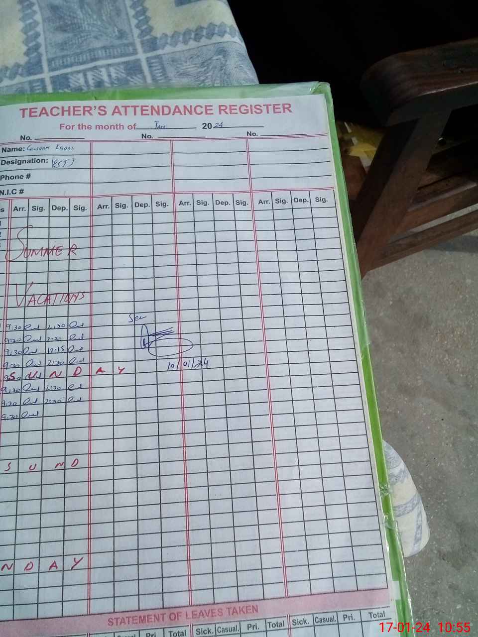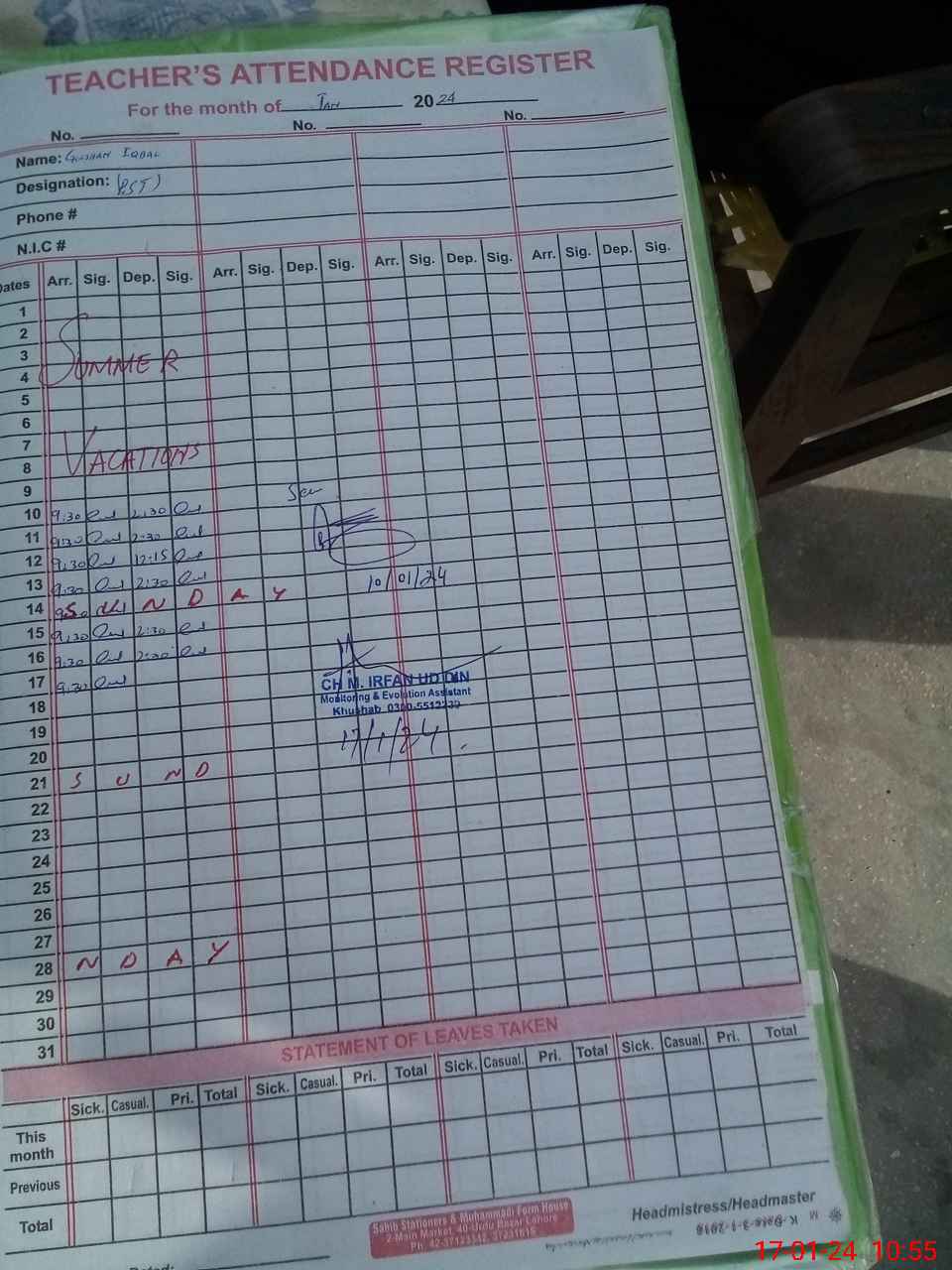 | Name: Mu**** Na**** Designation: (School Headmaster's/Headmistress's) PST Phone/Cell Number: 03**** |
