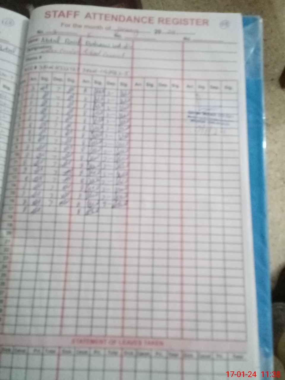 | CNIC | Full Name | Designation | R/C | Absence During Last Calender Month |