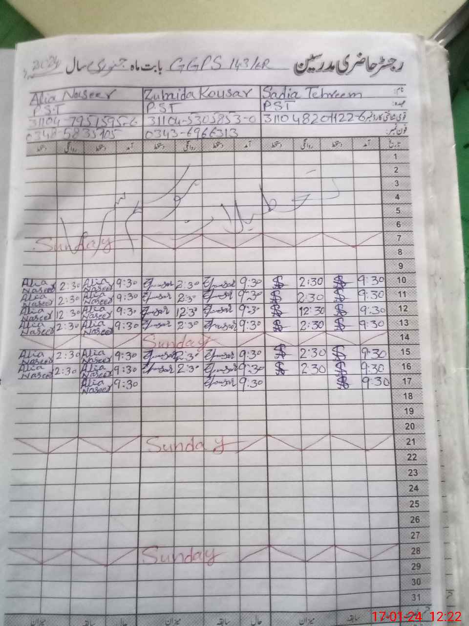 | Name: SA**** TA**** Designation: (School Headmaster's/Headmistress's) PST Phone/Cell Number: 03**** |