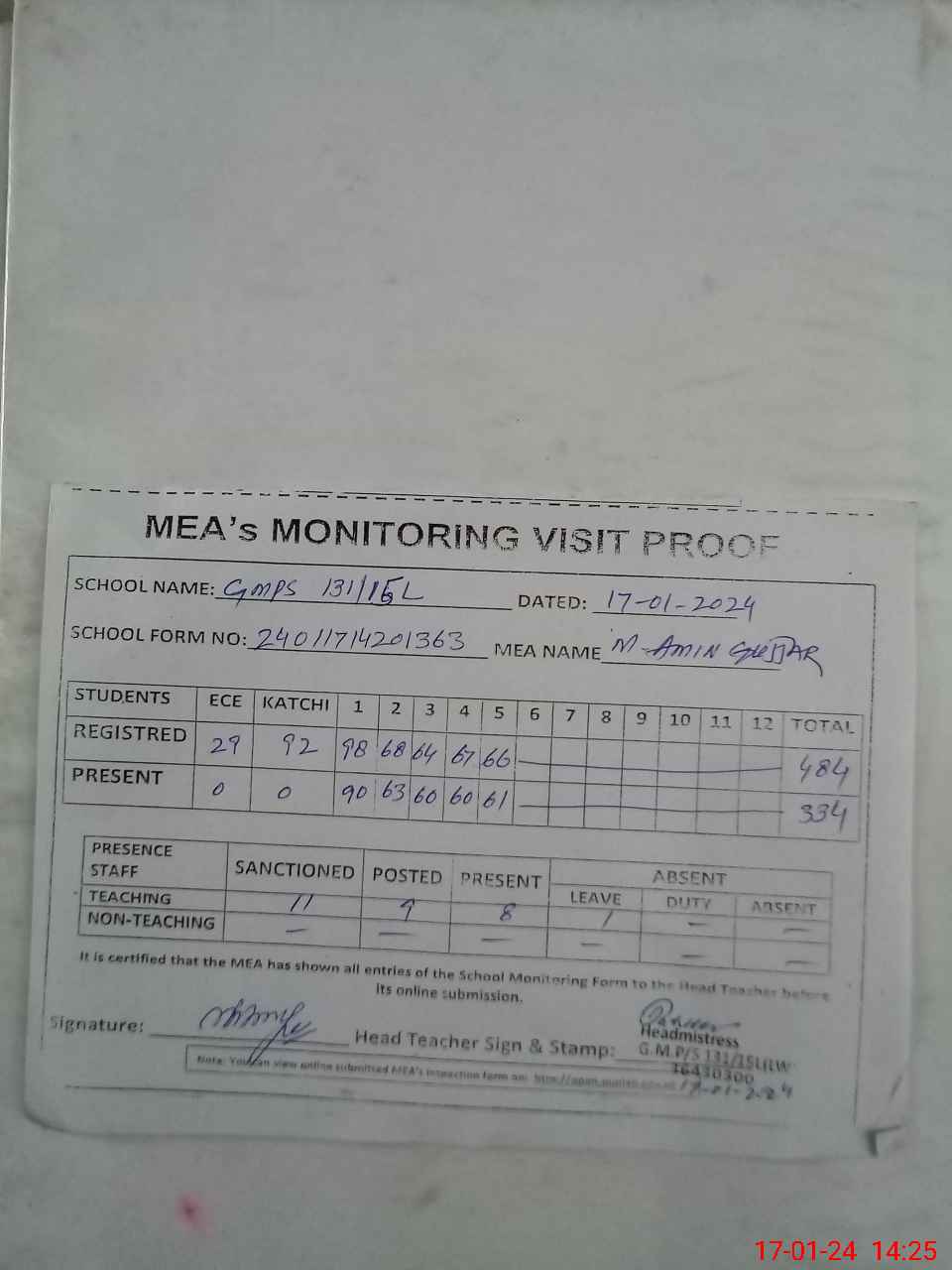 | EMIS Code: 36430300 | Name of School: GMPS 131/15-L, P/O 132/16-L, MIAN CHANNU | |||