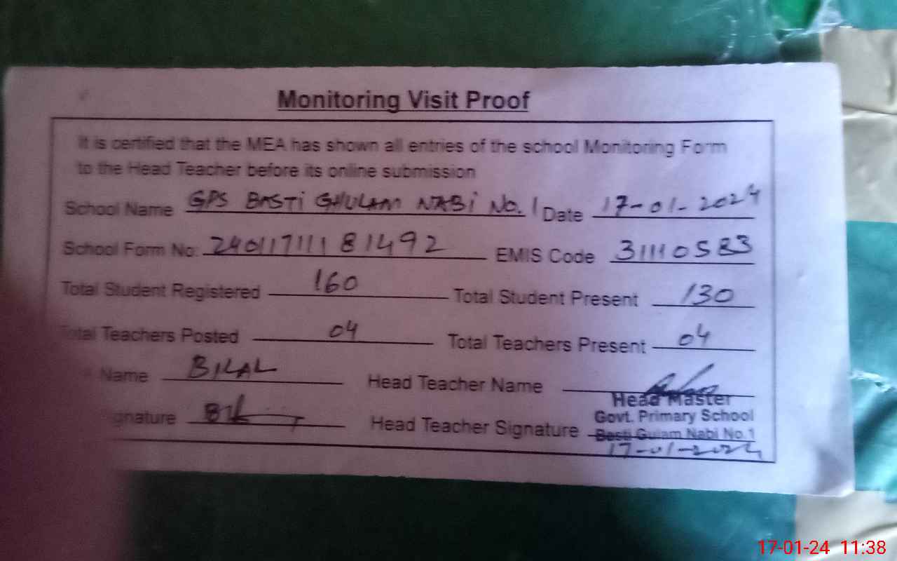 | EMIS Code: 31110583 | Name of School: GPS BASTI GHULAM NABI NO. 1 | |||