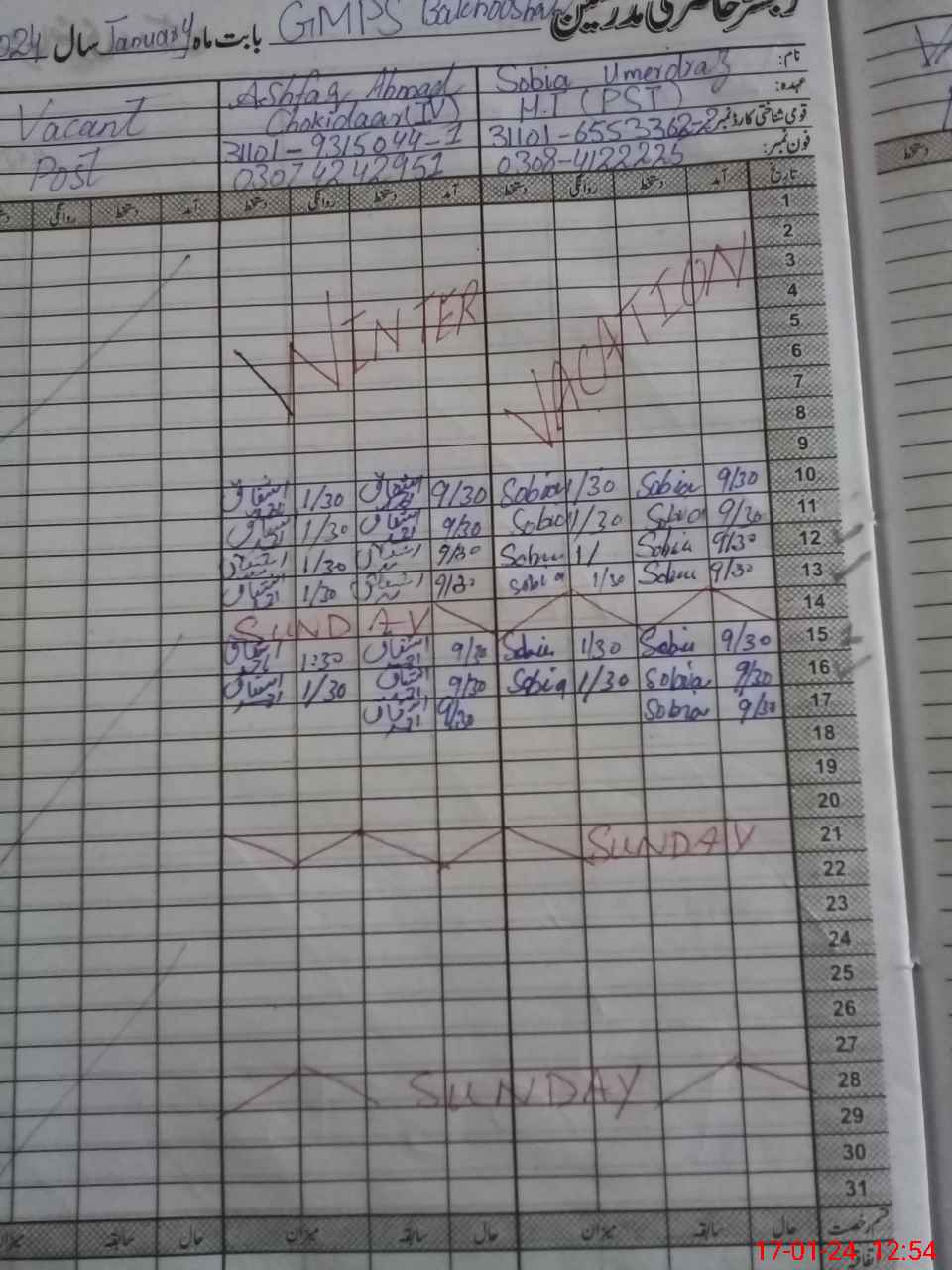 | CNIC | Full Name | Designation | R/C | Absence During Last Calender Month |