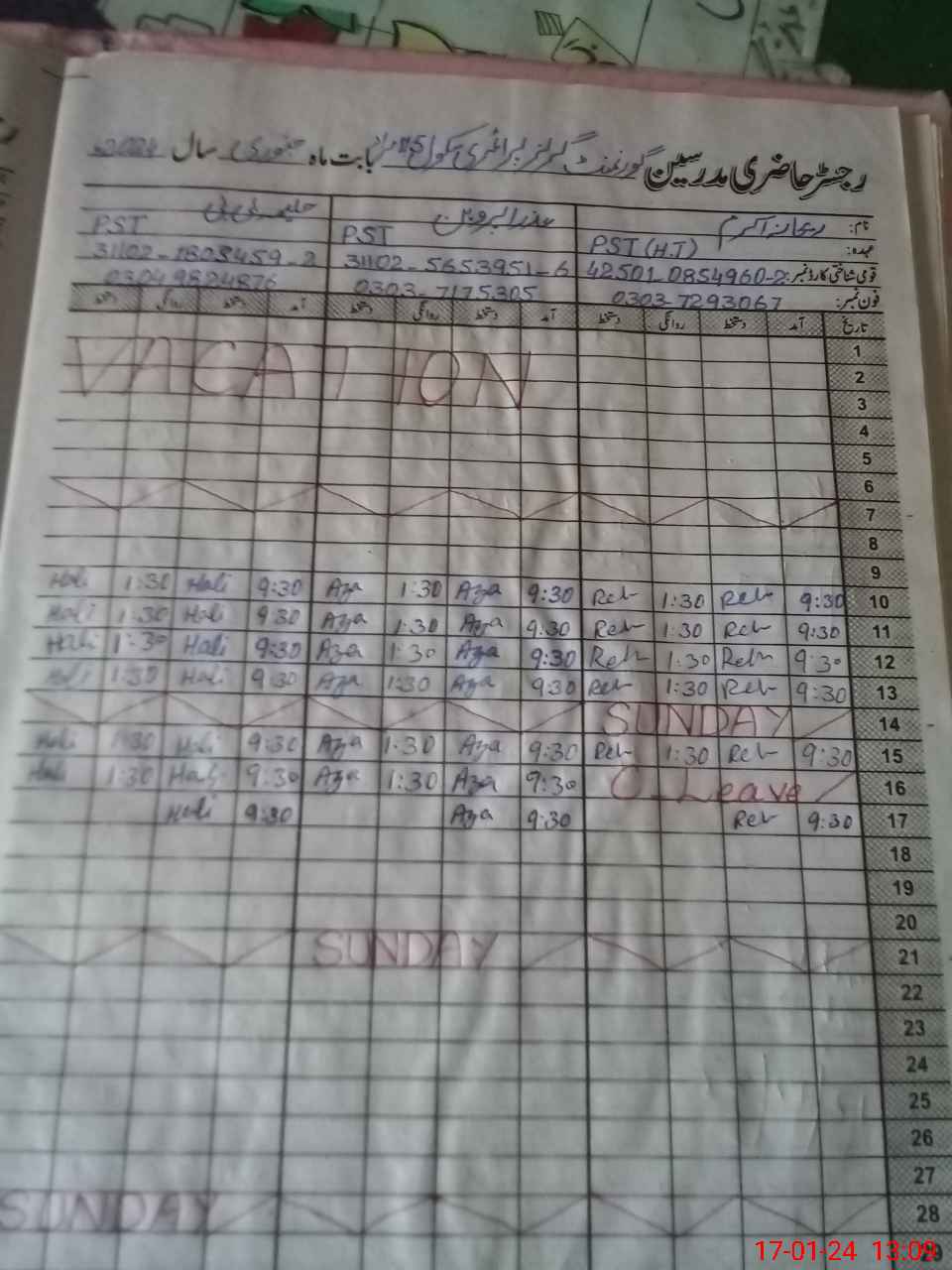 | CNIC | Full Name | Designation | R/C | Absence During Last Calender Month |