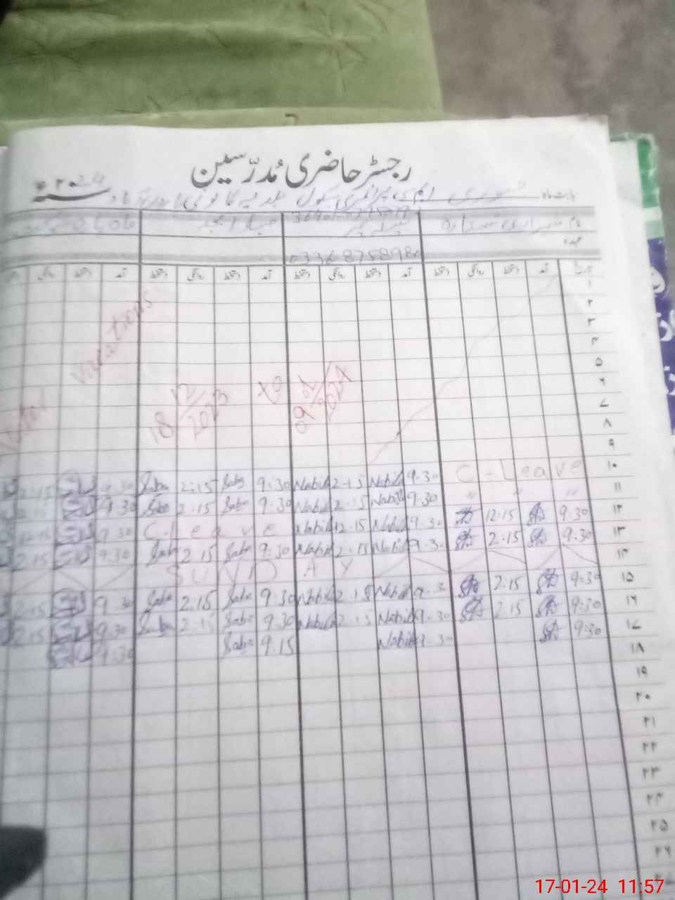 | CNIC | Full Name | Designation | R/C | Absence During Last Calender Month |