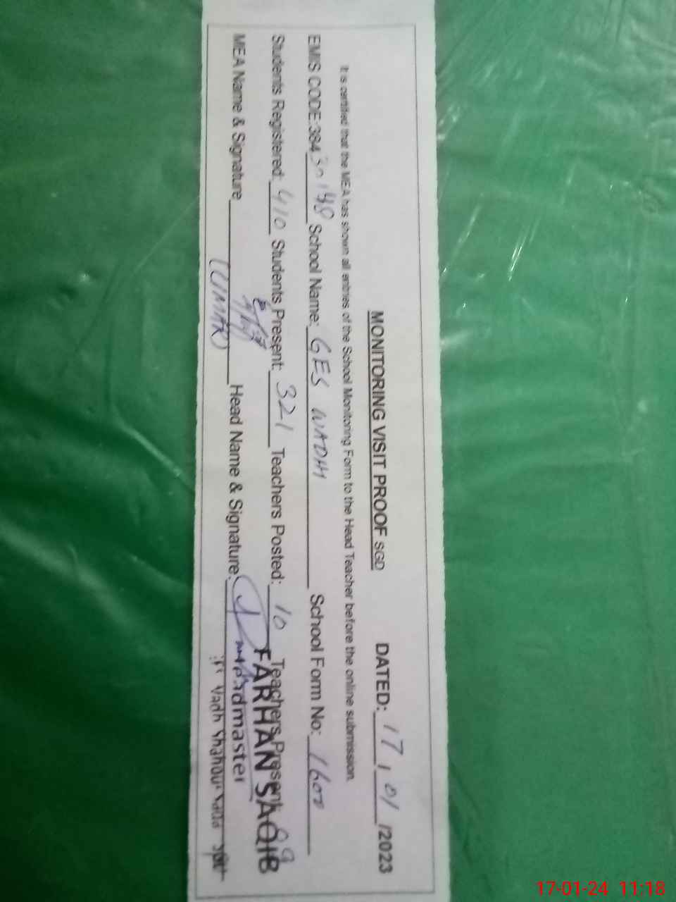 | Certified that this School was Inspected by the Undersigned MEA/DMO Today and the Information Stated Above is as Per Record. | |||||
