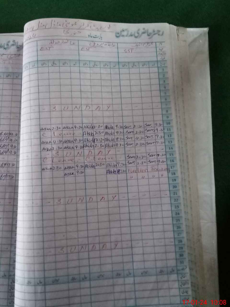 | CNIC | Full Name | Designation | R/C | Absence During Last Calender Month |