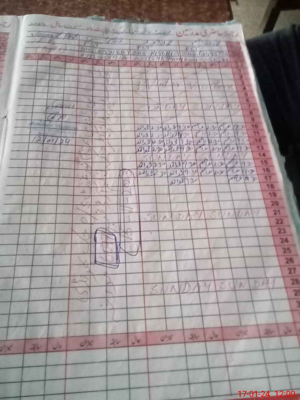 | CNIC | Full Name | Designation | R/C | Absence during last cal. month |