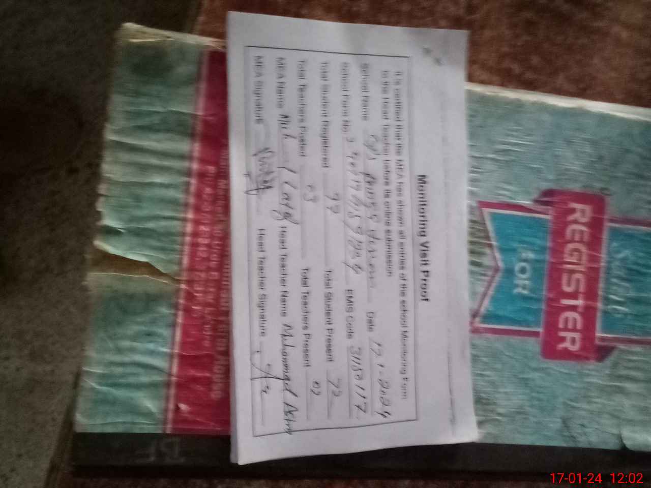 | Attendance Register | Head Teacher | MEA with School | Visit Proof |